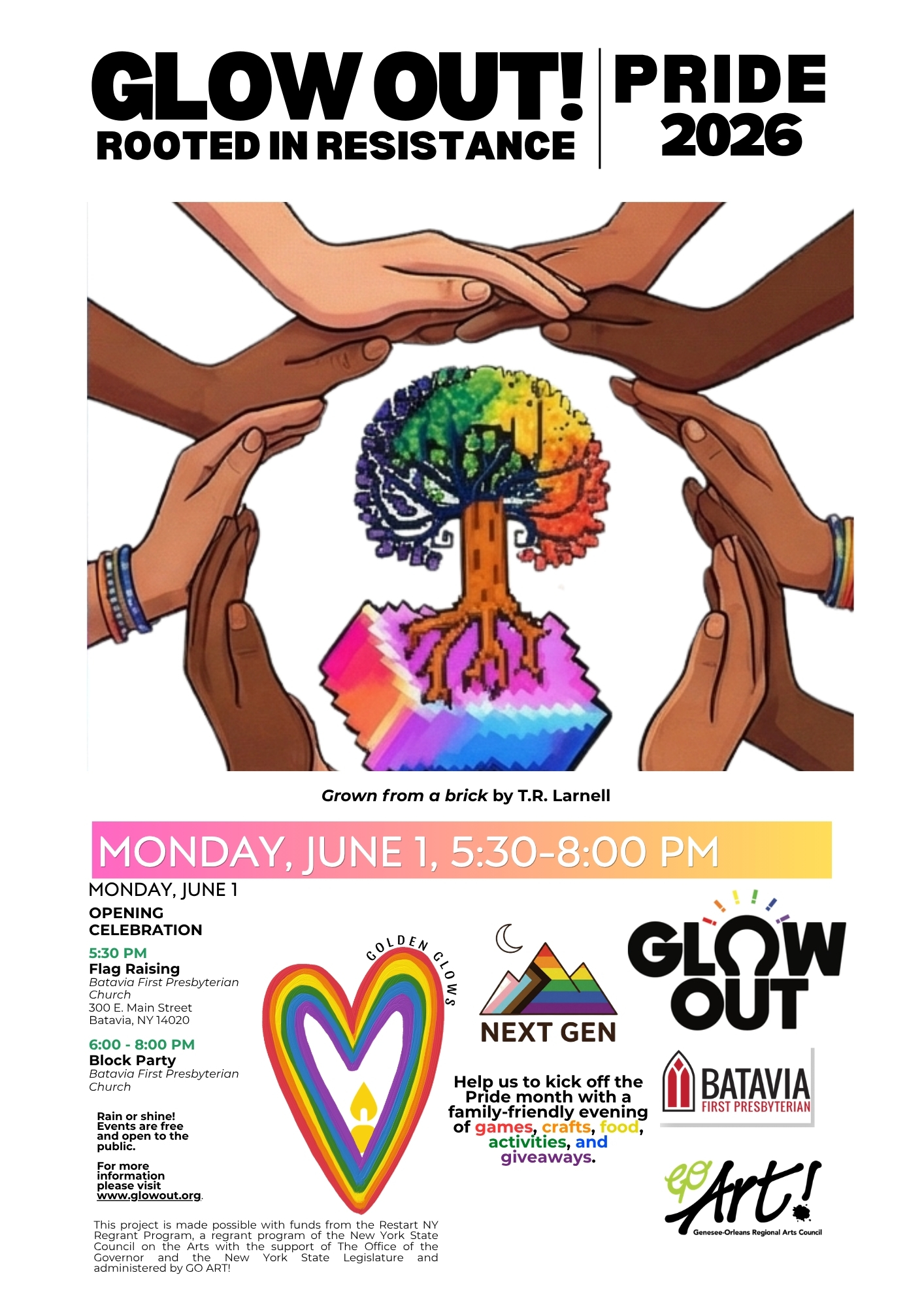 Batavia First Pres. 300 East Main Street, Batavia, NY, United StatesHelp us kick off Pride Month with a family-friendly evening of games, activities, and giveaways! Flag Raising @5:30