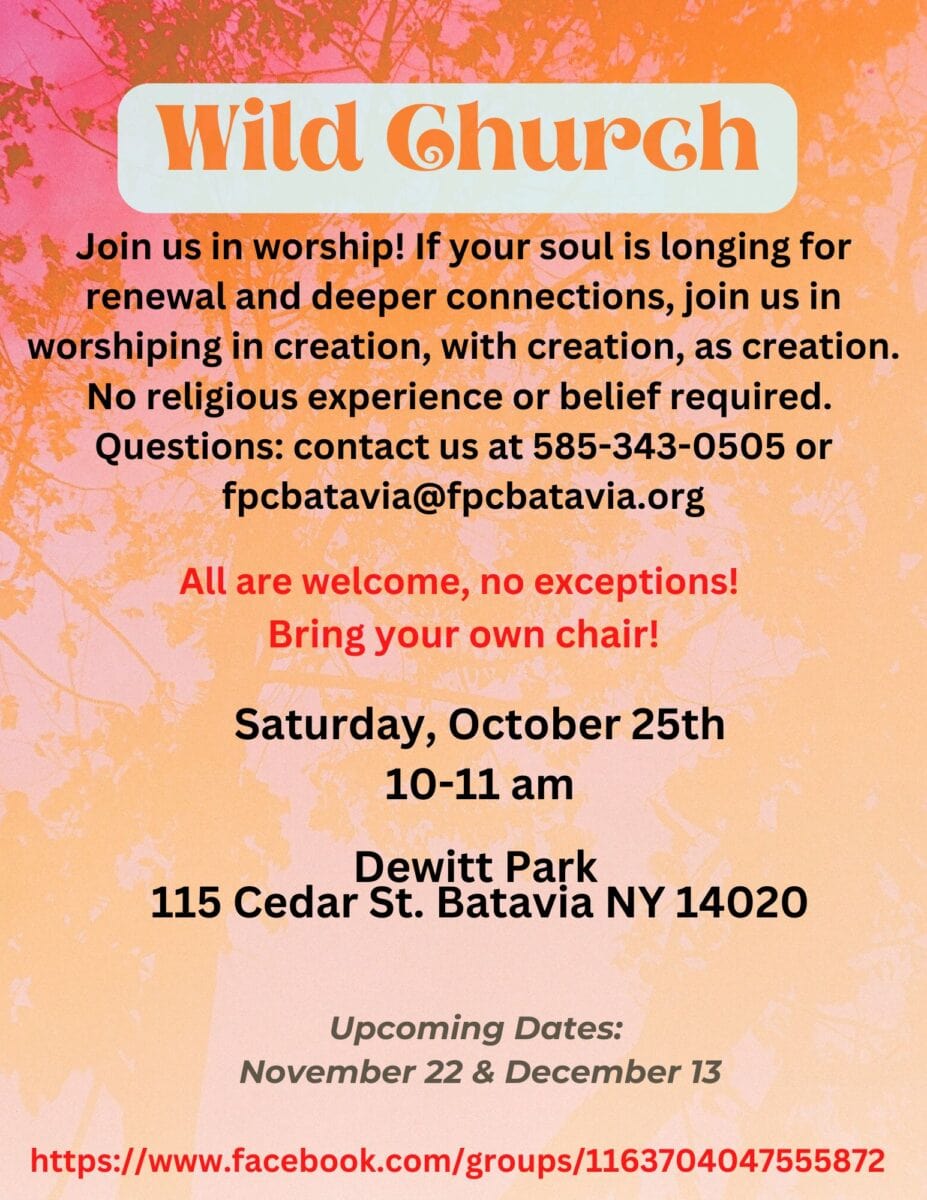 2023 Christmas Celebrations! Come and celebrate the joy of the season and of the birth of Christ! All three services will be different and have special messages and music to share the good news of love coming into our world through Jesus Christ! Childcare will be provided. If you have any questions, please let us know at fpcbatavia@fpcbatavia.org or 585-3434-0505.