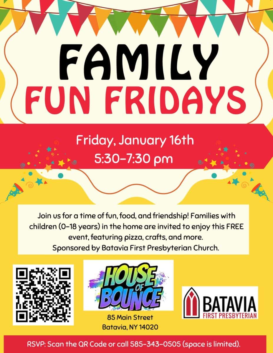 Join us for fun, food, play, and friendship. Families with children (0-18 years) in the home are invited to enjoy this FREE event sponsored by Batavia First Presbyterian Church. RSVP:…