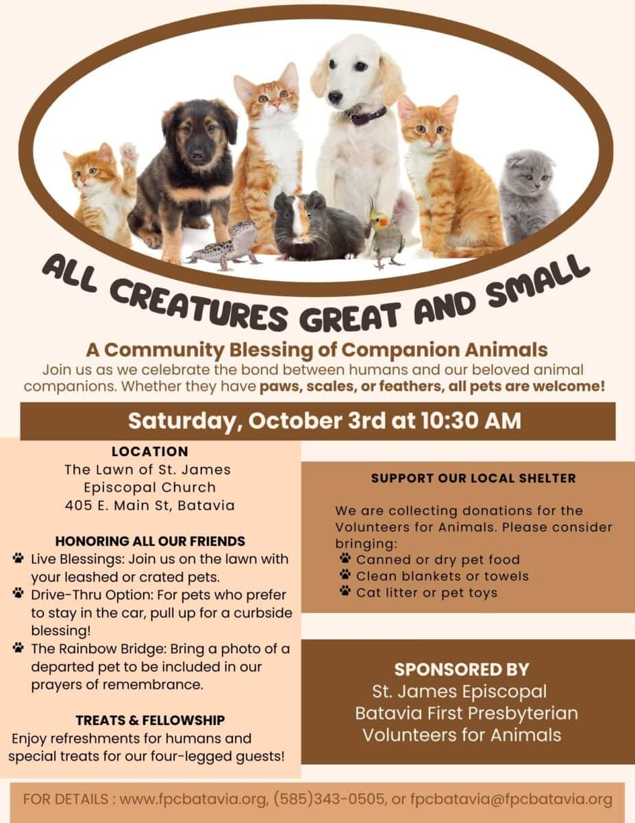 ALL CREATURES GREAT AND SMALL A Community Blessing of Companion Animals Join us as we celebrate the bond between humans and our beloved animal companions. Whether they have paws, scales,…